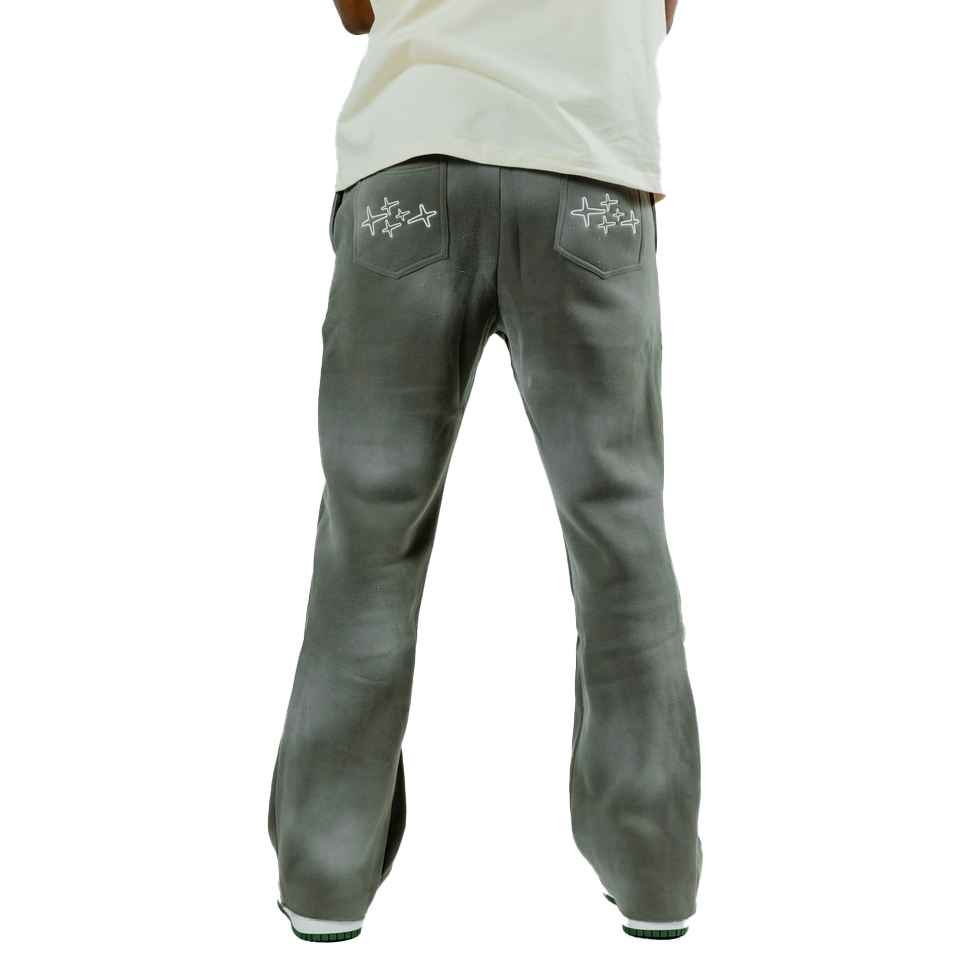 Custom Puff Print Logo Streetwear Stacked Jogger Patchwork Graffiti Paint Splatter Elastic Flare Sweatpants ₨0.00